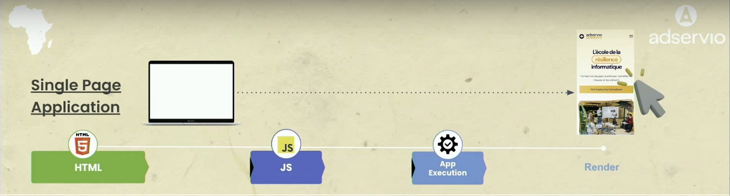 Single page applications traditionally load the HTML file first, then the bundle of JS is downloaded, followed by execution of the JS which leads to UI appearing on the screen.